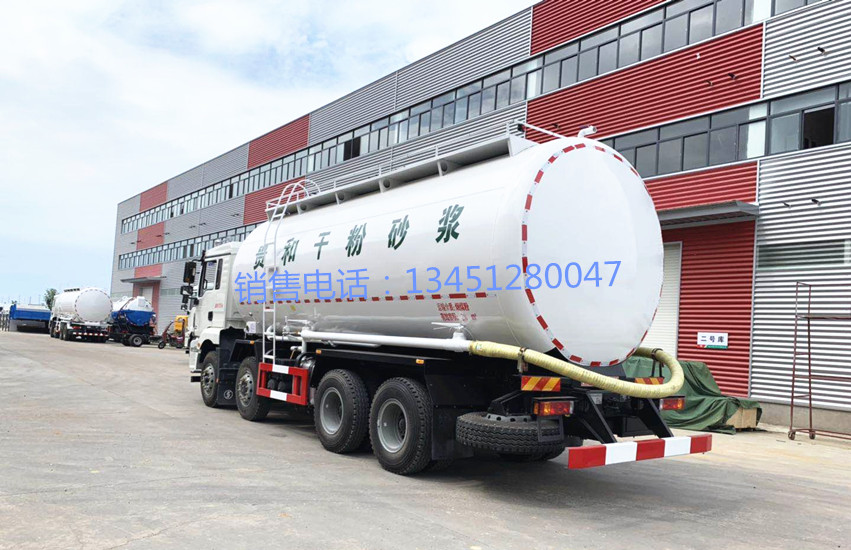 干混砂漿又稱干拌砂漿,系指由專業(yè)生產(chǎn)廠家生產(chǎn),由膠結(jié)材料、骨料和外加劑按一定比例混合而成的一種顆粒狀或粉狀混合物,在施工現(xiàn)場(chǎng)按使用說(shuō)明加水?dāng)嚢杓闯蔀樯皾{拌合物,干混砂漿運(yùn)輸車主要從事將干混砂漿從攪拌站運(yùn)往施工現(xiàn)場(chǎng)。