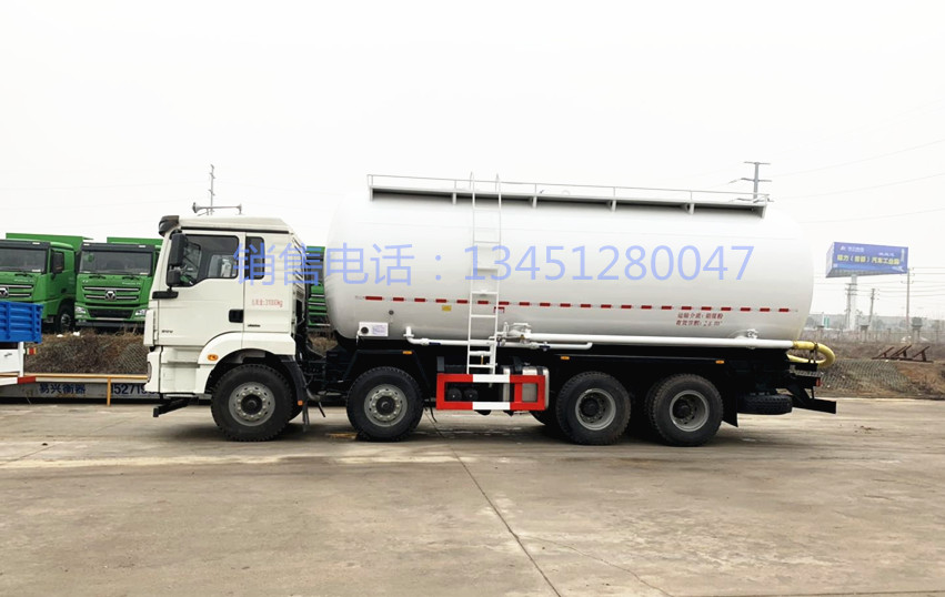 陜汽德龍前四后八砂漿運輸車,濰柴300馬力,法士特10檔變速箱,11.00鋼絲胎,罐體容積28方可拉砂漿44.8噸