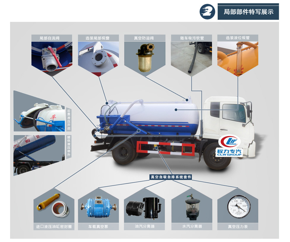 3、東風(fēng)天錦清洗吸污兩用車采用意大利進(jìn)口高壓泵,60米(Φ19mm)高壓管,十個高壓噴嘴。
