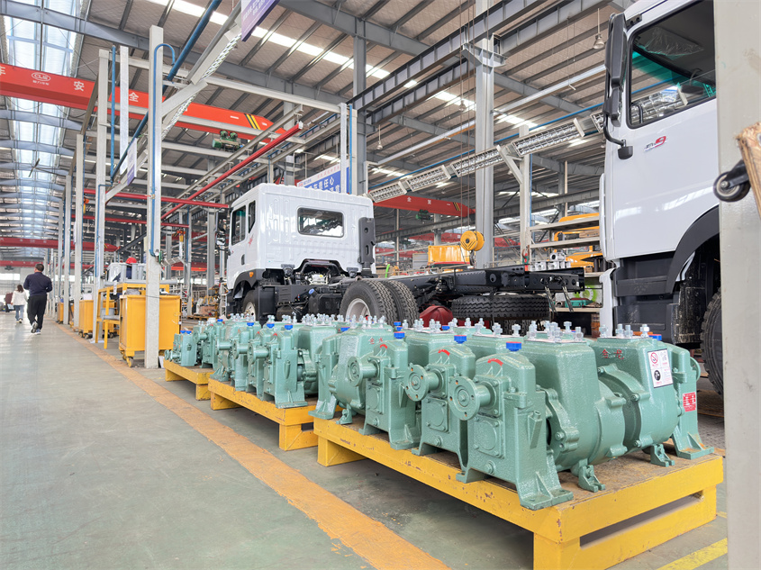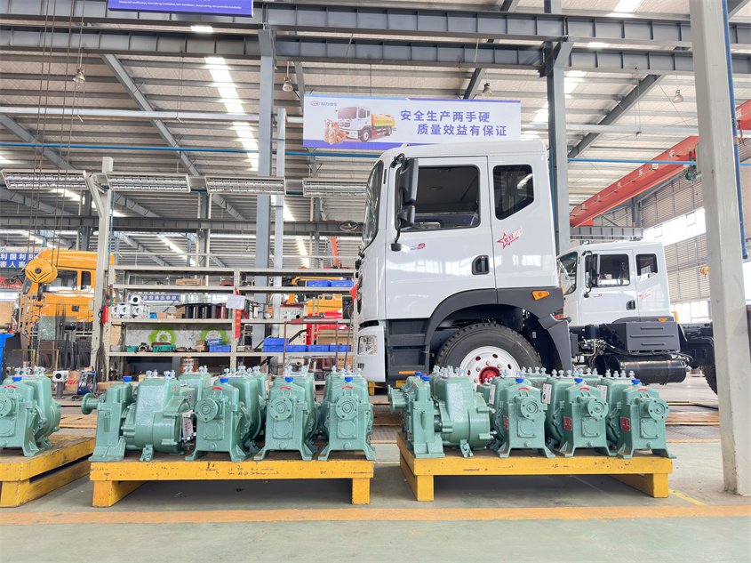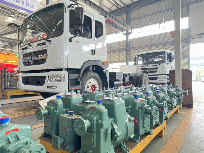 2、泵工作時需要的動力直接由汽車發動機通過取力器提供。作地面泵站也可用電機或柴油機驅動。