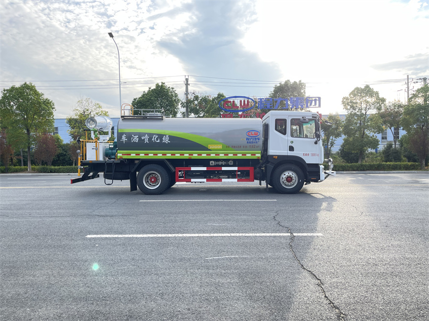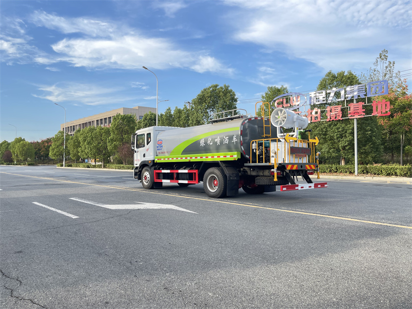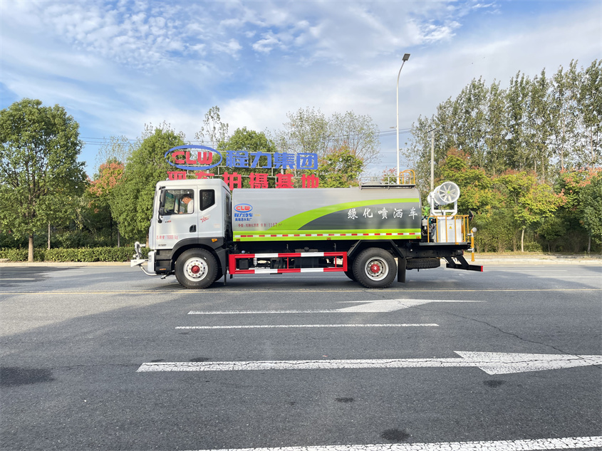 東風(fēng)15噸多功能抑塵灑水車整車配置:東風(fēng)D9車身,康明斯6缸230馬力渦輪增壓發(fā)動(dòng)機(jī),法士特8檔變速箱,前橋5噸,后橋10噸;10.00R20后雙輪鋼絲胎,空氣懸架真皮座椅;原廠冷暖空調(diào),中控門鎖,電動(dòng)門窗,LED日間行車燈。罐體4mm厚武鋼專用罐式板制作,實(shí)際容積15立方,罐內(nèi)加裝隔板具有防波作用,以減低汽車行駛時(shí)罐體液體的沖擊。大功率杭州威龍水泵;泵進(jìn)泵出;DN80主出水管,消防栓接口,前沖、后灑、側(cè)噴、后工作平臺(tái)帶綠化水炮,垂直吸程≧7米,灑水寬度≧14-18米,射程≧20-25米,引水時(shí)間<5min,流量90m3/h。鍍鋅沖孔后工作平臺(tái)帶30米S彎高壓水炮,全車316不銹鋼大通徑球閥;自流閥、不銹鋼濾網(wǎng)、帶自吸自排功能。兩根等長輸水管,電泳金屬漆,其余標(biāo)配。可選裝非車帶泵動(dòng)力不銹鋼罐體等。