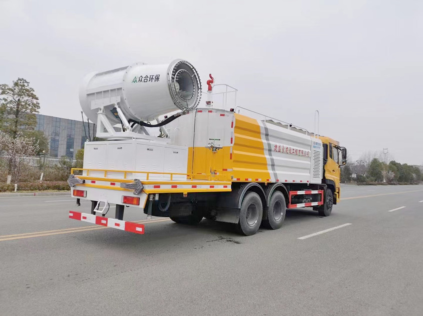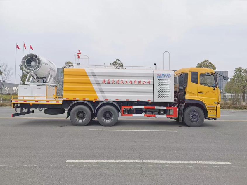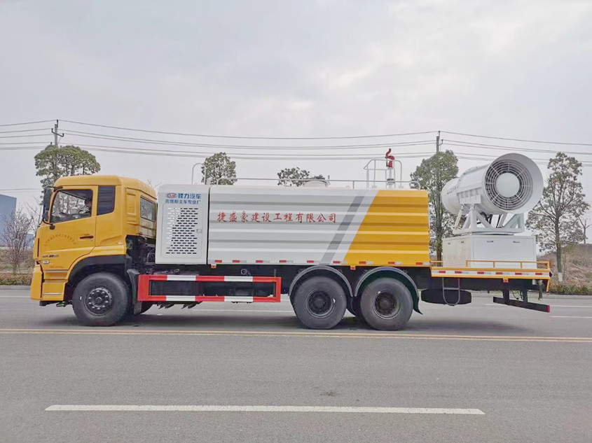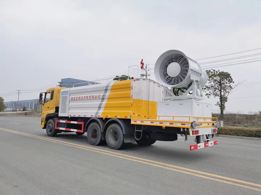 東風20噸多功能抑塵灑水車抑塵配置:配備40米全自動霧炮,風筒電機功率:7KW;水泵電機功率:4KW;水平射程:20-40M;進風口直徑:600mm;霧炮噴頭個數:18+;霧滴顆粒:40-200um;水平旋轉角度:0°-360°俯仰角度:﹣10°-60°;控制方式:200m無線遙控;發電機功率:單缸水冷30KW柴油發電機組。
