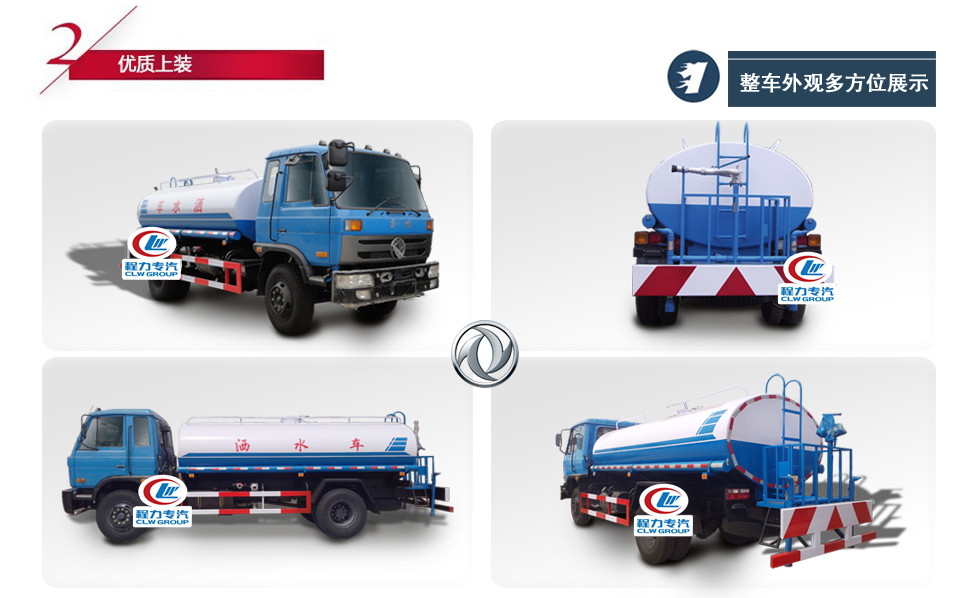 該車具有免征公告(可免交車輛購置稅)。罐體采用武鋼5mm優質碳鋼板一次卷壓成型,完全做到無縫成型。罐設多道防波隔板,采用高壓氣體試漏檢測,使罐體具有強度高,重心穩,車輛運載平穩。罐體外表為烤漆,罐體及各杠貼紅白色視覺反光條,罐體兩側噴“綠化灑水車”字樣(可按您的要求噴繪字樣),罐體顏色出廠為上白下綠或上白下藍(可按您的要求噴繪顏色)。