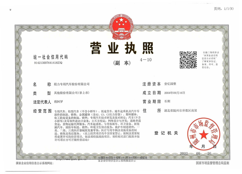 程力專用汽車是中國大型灑水車專業生產廠家, 年度市場占有率全國第一名,在中國平均每三輛灑水車,就有一輛灑水車是從程力公司生產的。 公司以“精益求精的品質”拓展市場,以“一流的售后服務”為經營宗旨,“誠信經營,互惠雙贏”為經營策略,先后被評為“重合同守信用企業”、“消費者滿意單位”。 國內唯一一個批量生產專用車設備的企業。
