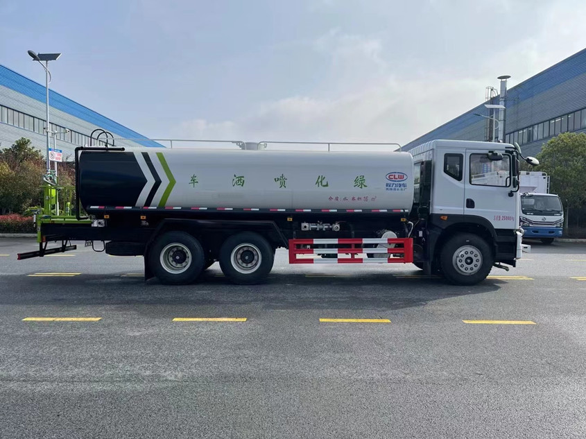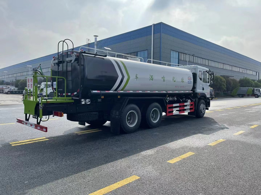 東風T5-20噸多功能抑塵灑水車整車配置:東風T5車身,玉柴6缸270馬力渦輪增壓發動機,法士特大8檔變速箱,前橋5噸,后橋10噸雙軸并裝;10.00R20輪鋼絲胎,氣囊座椅;原廠冷暖空調,中控門鎖,電動門窗,雙層大梁,多功能方向盤,行車記錄儀。罐體4mm厚武鋼專用罐式板制作,實際容積20立方,罐內加裝隔板具有防波作用,以減低汽車行駛時罐體液體的沖擊。大功率杭州威龍水泵;泵進泵出;DN80主出水管,消防栓接口,前沖、后灑、側噴、后工作平臺帶綠化水炮,垂直吸程≧7米,灑水寬度≧14-18米,射程≧20-25米,引水時間<5min,流量90m3/h。鍍鋅沖孔后工作平臺帶30米S彎高壓水炮,全車316不銹鋼大通徑球閥;自流閥、不銹鋼濾網、帶自吸自排功能。兩根等長輸水管,電泳金屬漆,其余標配。可選裝非車帶泵動力不銹鋼罐體等。