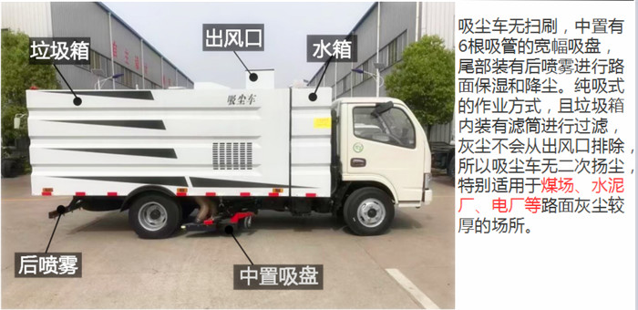 1.采用負(fù)壓純吸原理,徹底解決二次揚(yáng)塵污染,讓清掃車不再是“揚(yáng)塵車”。