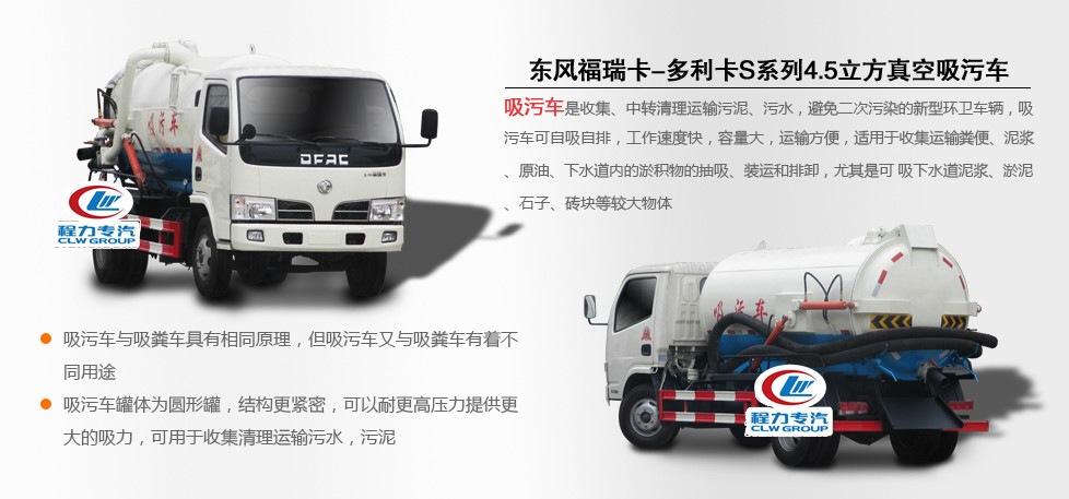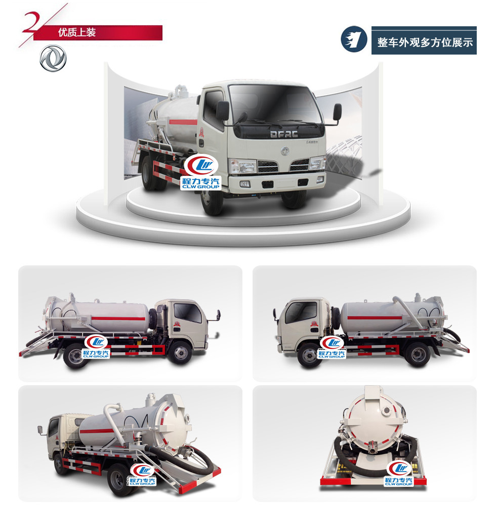 專用功能:吸污車專用部分由取力器、傳動軸、真空吸污泵、壓力罐體、液壓部分,管網系統、真空壓力表、視糞窗、洗手裝置等組成,隨車配置大功率真空吸污泵和優質液壓系統,罐體封頭一次壓鑄成型、罐體可后開、雙頂自卸。罐內污物可通過后蓋直接傾倒,具有真空度高(比吸糞車的吸力更大)、噸位大、效率高、用途更廣泛的特點。