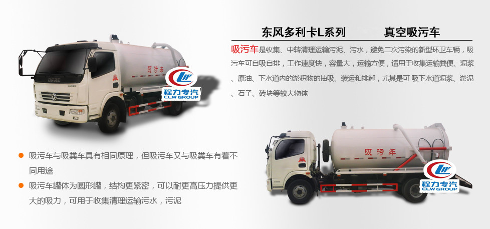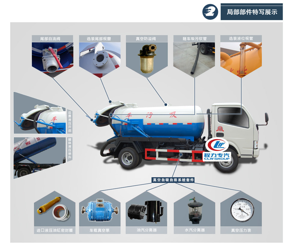 專用功能:吸污車專用部分由取力器、傳動軸、真空吸污泵、壓力罐體、液壓部分,管網(wǎng)系統(tǒng)、真空壓力表、視糞窗、洗手裝置等組成,隨車配置大功率真空吸污泵和優(yōu)質(zhì)液壓系統(tǒng),罐體封頭一次壓鑄成型、罐體可后開、雙頂自卸。罐內(nèi)污物可通過后蓋直接傾倒,具有真空度高(比吸糞車的吸力更大)、噸位大、效率高、用途更廣泛的特點。